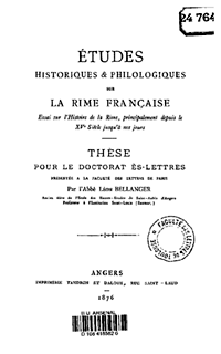 historiques et philologiques sur la rime française, Essai sur